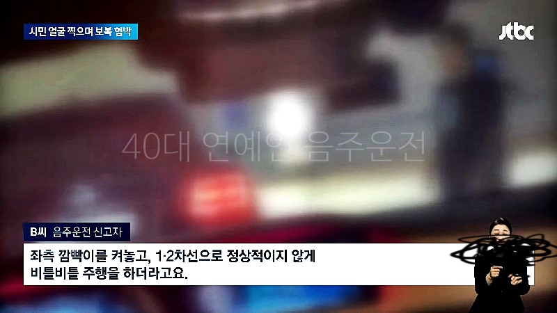 신고자들은 JTBC와의 인터뷰에서 "좌측 깜빡이를 켜고 1·2차선을 정상적이지 않게 비틀비틀 주행하더라"며 "저희 차 번호판이랑 얼굴을 찍고 '너희 가만 안 둬'라는 식으로 말했다"고 당시 상황을 전했다. 이들은 A씨가 음주 상태에서 위험하게 운전하는 모습을 목격하고 이를 경찰에 신고하게 되었다고 설명했다. 또한, A씨가 자신들을 폭행하고 협박했다고 주장하며, 사건의 심각성을 강조했다.
